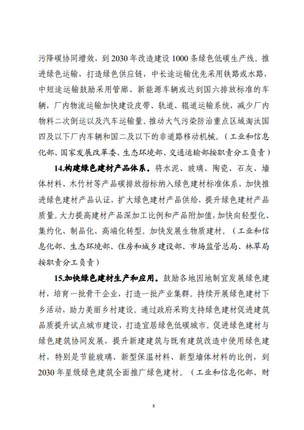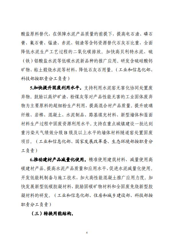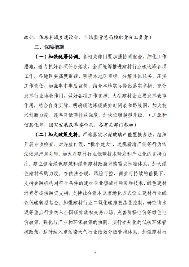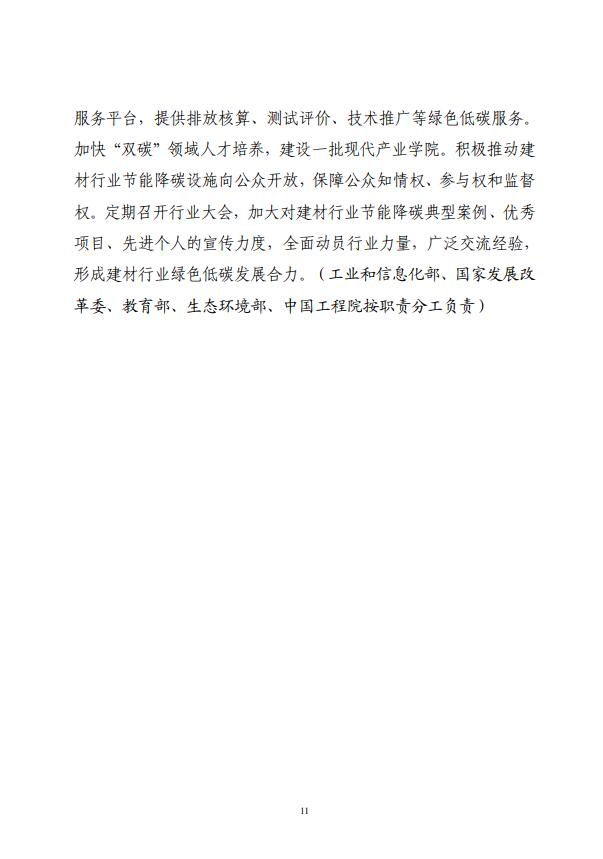四部門關于印發建材行業碳達峰實施方案的通知