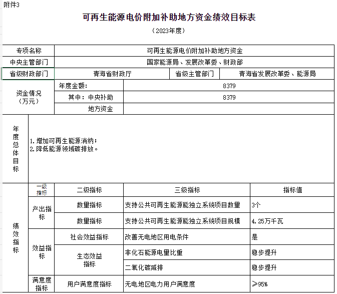 附件:1.可再生能源電價附加補助地方資金預算匯總表3.可再生能源電價附加補助地方資金績效目標表