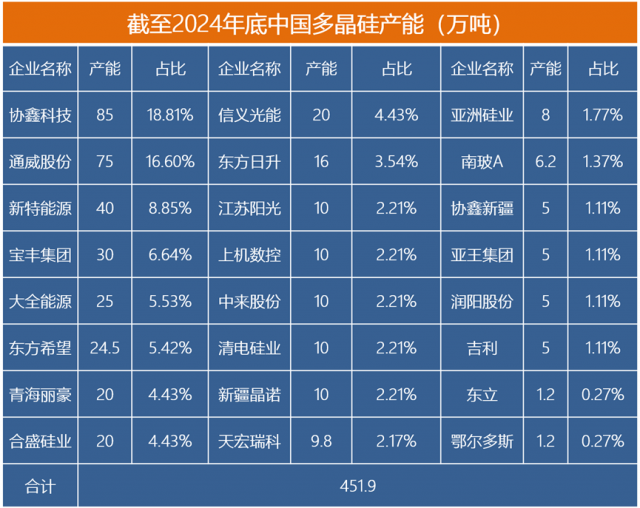 以2024年底452萬噸的多晶硅料產能,根據上述的測算邏輯,則分別對應: