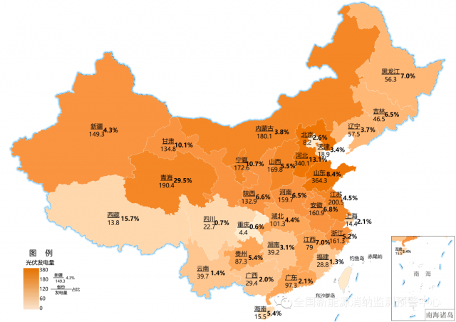 截至9月底累計光伏發電量(億千瓦時)及占本地區總發電量比重