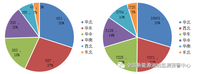 三季度各區域風電新增(左)、累計(右)裝機(萬千瓦)