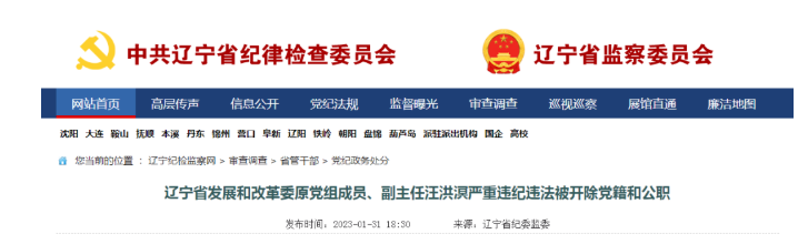 日前,經遼寧省委批準,遼寧省紀委監委對省發展和改革委原黨組成員、副主任,省能源局原局長汪洪溟嚴重違紀違法問題進行了立案審查調查。