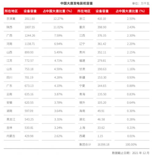 截至2021年底,大唐集團發電總裝機16398.18萬千瓦,其中清潔能源占比39.1%;分布于全國32個省區市以及境外13個國家和地區,占全國總裝機規模的7%。2020年、2021年大唐集團的清潔能源裝機及發電量情況如下表所示。