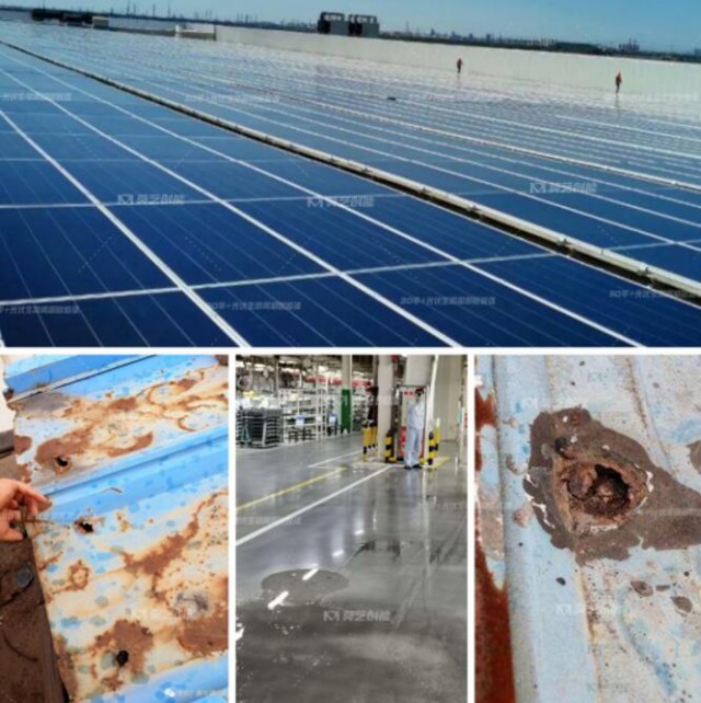 彩鋼瓦一旦漏水,建筑物施工時必須將光伏組件拆除后才能維修翻新,由此,建筑物的翻新成本和難度大大增加。所以,要實現(xiàn)光伏與建筑的深度融合,就必須徹底解決分布式光伏屋面的防水滲漏問題。