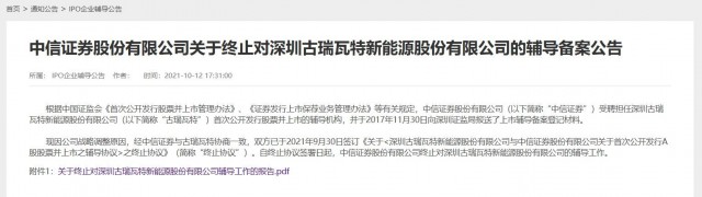 大股東退出,加上古瑞瓦特的進入資本市場的節奏緩慢,2021年9月,古瑞瓦特與中信證券終止了上市輔導,這意味著古瑞瓦特首次公開發行A股股票并上市的計劃生變。據中信證券2021年10月公布的信息,古瑞瓦特終止上市輔導的理由為“公司戰略調整”。