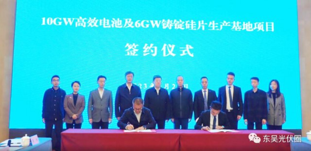 據了解,無錫合旺新能源科技有限公司是一家專注于光伏電池片的研發、產銷為一體的科技型企業。此次簽約的10GW高效電池及6GW鑄錠硅片生產基地項目總投資50.4億元。其中,10GW高效電池項目總投資為39.1億元,達產后營收100億元;6GW鑄錠硅片生產項目總投資為11.3億元,達產后營收30億元。