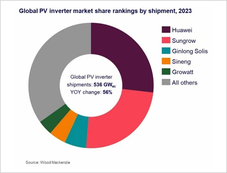逆變器領域則完全不同,過去十年在全球市場真正有絕對實力的只有陽光電源和華為,競爭環境相對寬松,目前兩家企業合計控制了大約一半的市場,還有很大的進擊空間。