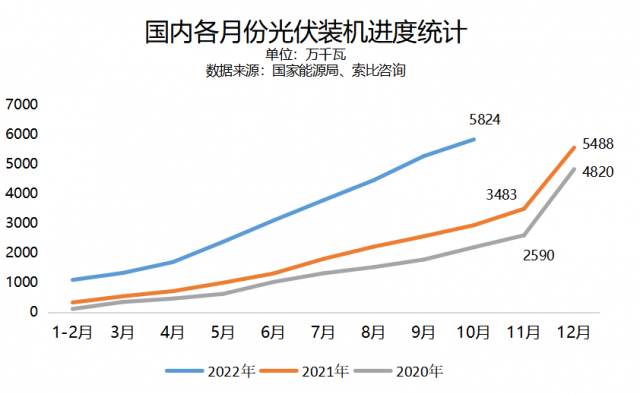 與9月單月新增裝機8.13GW的“壯舉”相比,10月單月新增5.64GW似乎有些“偏少”,環(huán)比出現(xiàn)下滑,結(jié)合此前三峽能源(SH:600905)公告中提到的“光伏組件價格始終維持在較高水平、年底大規(guī)模進行組件安裝的可能性很小、項目建設(shè)進展不及預期”等說法,難免會讓部分從業(yè)者擔心,今年四季度的搶裝潮能否如約而至,全年裝機規(guī)模能否達到業(yè)內(nèi)預期水平。