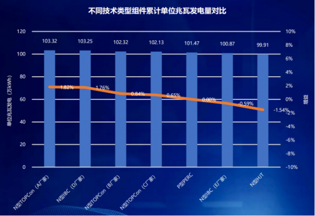 分版塊來看,在組件實證實驗數據中,前三季度N型高效組件發電較優,其中N型TOPCon組件發電量最高,其次是N型IBC組件。不過相關人員強調,實證數據中,N型HJT組件發電情況不盡如人意,是由于柵線發生反應導致組件運行電流明顯偏低,不具備整體HJT技術路線的橫向比較參考條件。總體來看,實證實驗數據表明N型高效組件總體發電性能最優,代表了未來組件技術發展方向。