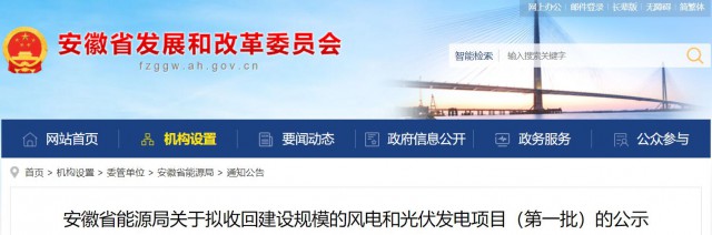 安徽省能源局關(guān)于擬收回建設(shè)規(guī)模的風(fēng)電和光伏發(fā)電項(xiàng)目(第一批)的公示