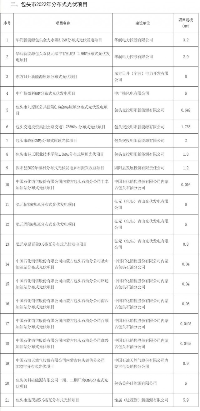 1月10日,內蒙古包頭2022年分散式風電、分布式光伏發電項目競爭性配置優選結果的公示。