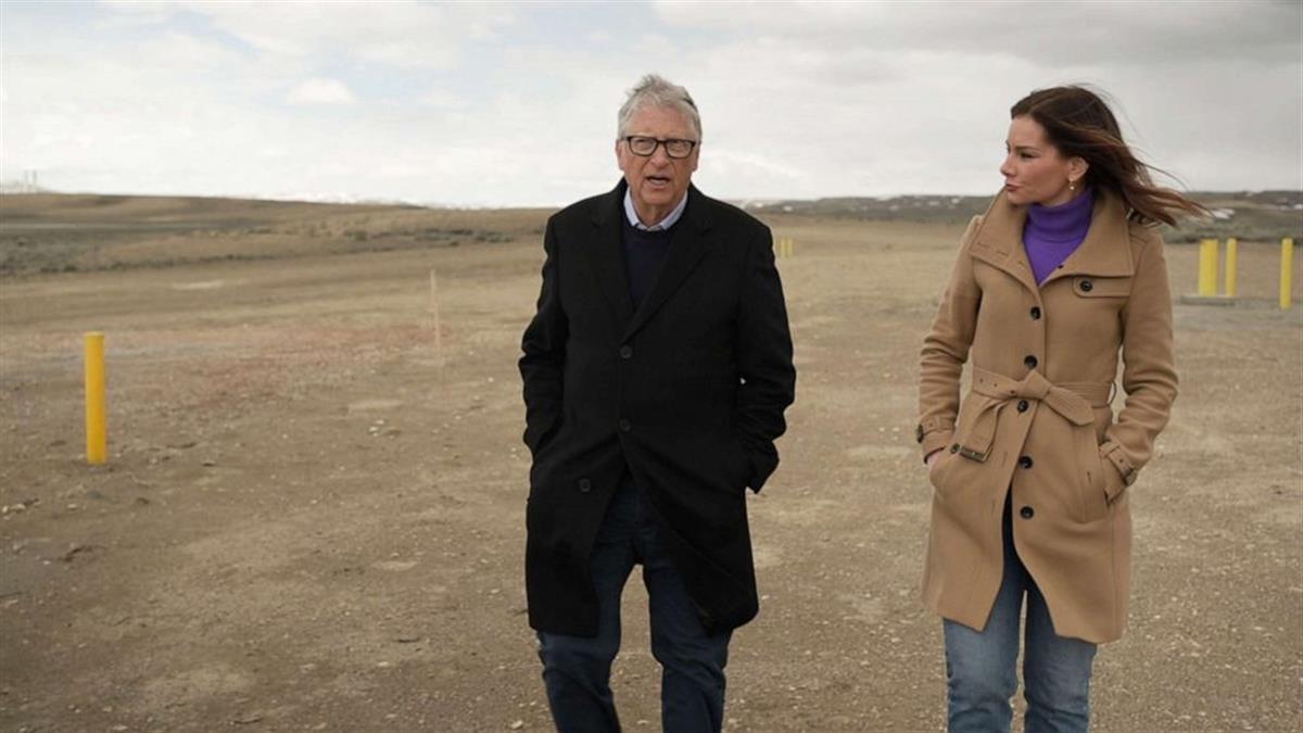 蓋茨和ABC記者在懷俄明州新建核電站附近(圖源:ABC)