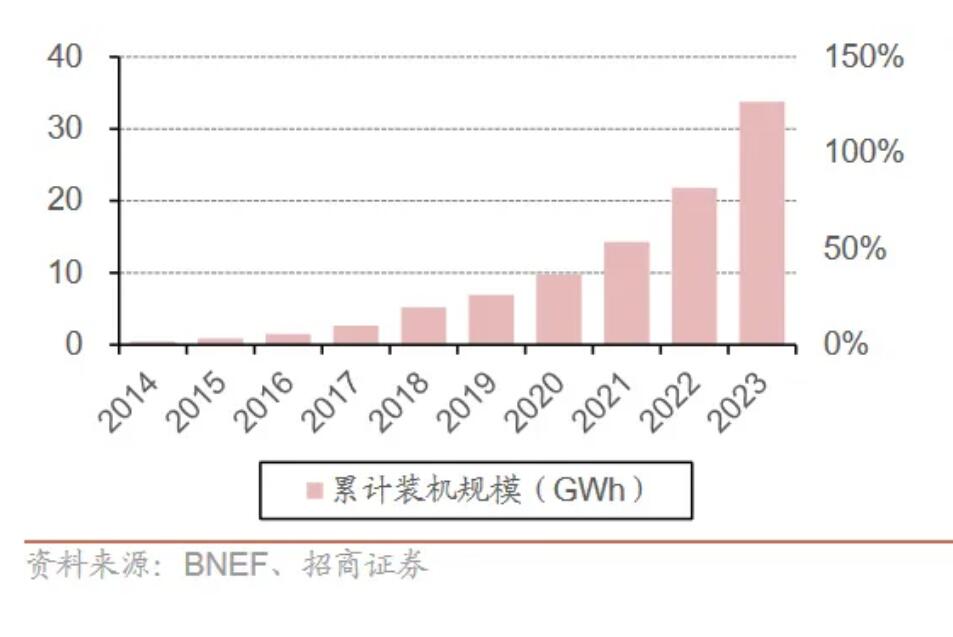 圖:2014-2023全球戶儲累計裝機規模(GWh)