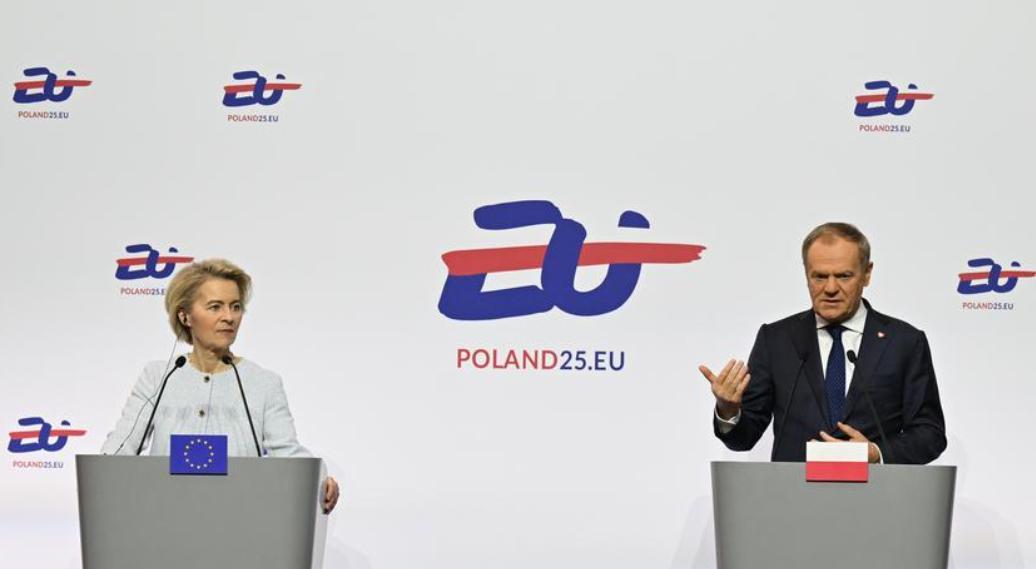 當(dāng)天,波蘭總理圖斯克在與到訪(fǎng)的歐盟委員會(huì)主席馮德萊恩舉行的聯(lián)合新聞發(fā)布會(huì)上重申,波蘭不會(huì)實(shí)施任何增加配額的移民協(xié)議,他愿意“與所有人合作,保護(hù)歐洲免受非法移民侵害”。圖斯克強(qiáng)調(diào),2024年,波蘭通過(guò)增加基礎(chǔ)設(shè)施封鎖邊境的方式使得東部地區(qū)非法越境量減少了80%,該舉措完全是由波蘭出資,歐盟應(yīng)在確保東部邊境安全方面加大投資。