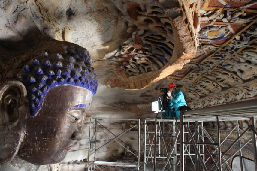 云岡石窟第九窟數(shù)字化采集現(xiàn)場。云岡研究院供圖