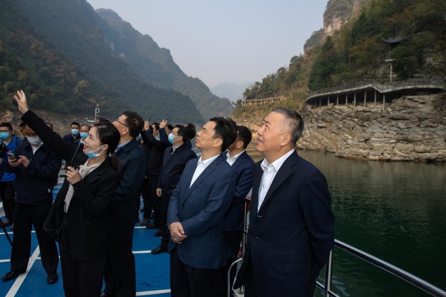 活動結束后,雷鳴山、馬澤江等赴長陽清江抽水蓄能項目實地調研施工情況,并乘船考察隔河巖電站庫區,調研清江水系連通及生態修復工程有關情況。(攝影:胡九思 李時宇 毛翔春)