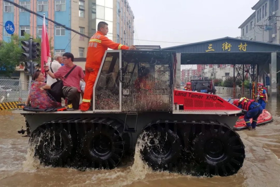 災情發生后,8月2日,國家電網在涿州成立抗洪搶險前線指揮部,在最短時間內確定實施轉供搶修方案——110千伏塔上變電站設備損毀較嚴重,直接將該站供電線路轉接,由其他電源供應,送電前由電源車臨時為居民提供基本生活用電。