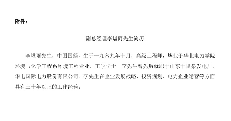 同時,會議審議并批準了《關于聘任副總經理的議案》,同意聘任李堪雨先生為本公司副總經理。李堪雨先生作為本公司副總經理的任期自董事會審議通過之日起至第十屆董事會任期屆滿之日止。