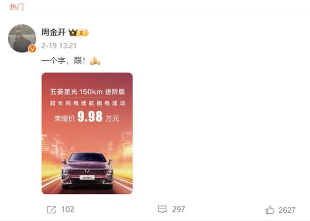 上汽通用五菱品牌事業部副總經理周钘在微博表示跟進降價