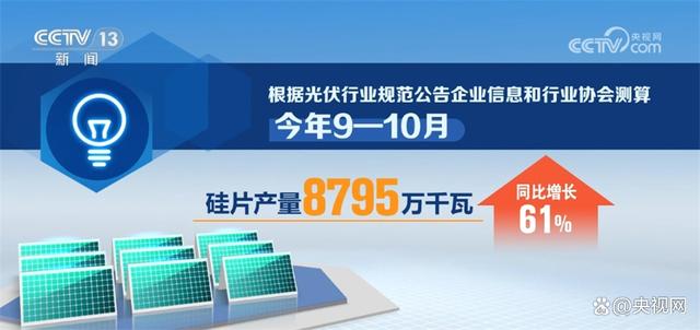 央視網(wǎng)消息:工業(yè)和信息化部12月13日發(fā)布當(dāng)前全國光伏制造行業(yè)最新運(yùn)行情況。數(shù)據(jù)顯示,今年9—10月,我國光伏制造業(yè)保持高位運(yùn)行,硅料、硅片、電池、組件產(chǎn)量同比增長(zhǎng)均超60%。