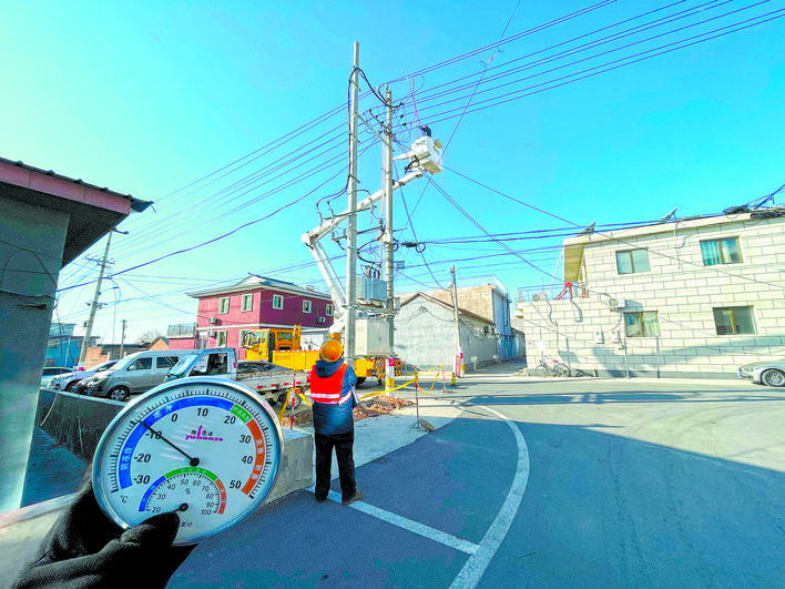 圖② 1月6日,北京平谷供電公司帶電班開展帶電接火作業,保障電力可靠供應。黃曉東 張強 攝