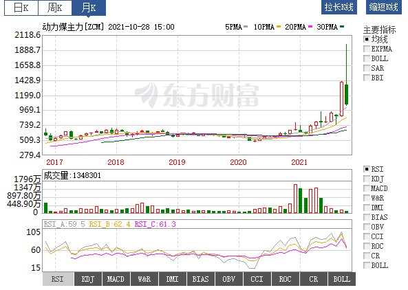 由K線圖上可知,煤價在今年4月突破了長達若干年的大箱體,開始了瘋狂的上升之旅。從月線上看,如今一根長上影線避雷針,從技術(shù)上來講,死翹翹了。