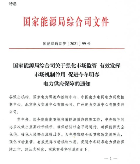 ? 近日,國家能源局綜合司發布特急通知,要求強化市場監管、發揮市場機制、促進電力供應保障。