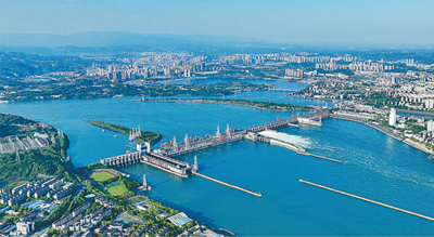 葛洲壩水利樞紐被譽為“萬里長江第一壩”。1988年12月全部機組投產(chǎn)發(fā)電,總裝機容量273.5萬千瓦,年均發(fā)電量157億千瓦時。