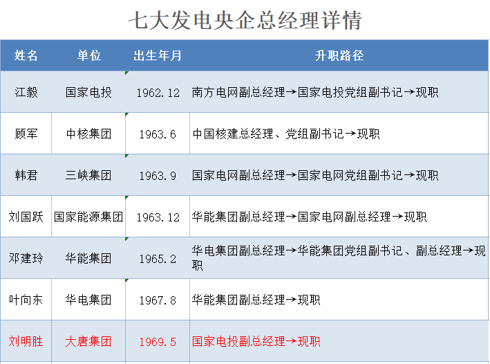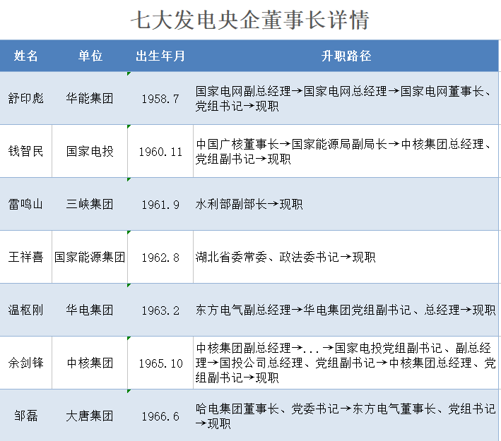 7位發電央企總經理的詳細檔案(按年齡排序)