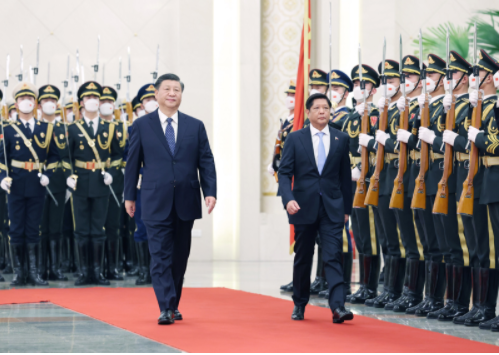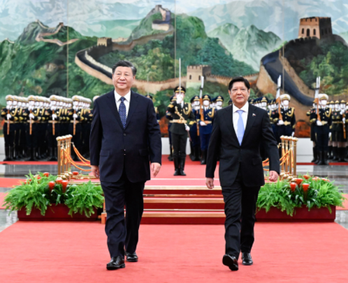 習(xí)近平歡迎馬科斯就任菲律賓總統(tǒng)后首次訪華。習(xí)近平指出,這是你首次正式訪問東盟以外國(guó)家,你也是今年中方接待的首位外國(guó)領(lǐng)導(dǎo)人。這充分體現(xiàn)了中菲關(guān)系的密切程度,也說明雙方在彼此外交格局中占有重要位置。中菲是一衣帶水的近鄰。在兩國(guó)上千年交往史上,以誠(chéng)相待、守望相助始終是中菲關(guān)系主流,也是兩國(guó)人民共有的寶貴精神財(cái)富。48年前,你的父親同中國(guó)老一輩領(lǐng)導(dǎo)人洞察時(shí)局、順應(yīng)大勢(shì),共同作出中菲建交的歷史性決定。此后近半個(gè)世紀(jì),無論國(guó)際風(fēng)云和菲律賓國(guó)內(nèi)政局如何變化,你和你的家族一本初衷,矢志推動(dòng)中菲友好,這份情誼彌足珍貴。希望你這次訪華不僅是一次“懷舊之旅”,更是一次“開創(chuàng)之旅”。中方始終把菲律賓放在周邊外交優(yōu)先方向,堅(jiān)持從戰(zhàn)略和全局高度看待中菲關(guān)系。我愿同你保持經(jīng)常性戰(zhàn)略溝通,全面規(guī)劃雙邊關(guān)系下步發(fā)展,做互幫互助的好鄰居、相知相近的好親戚、合作共贏的好伙伴,為兩國(guó)人民帶來更多福祉,為地區(qū)和平穩(wěn)定貢獻(xiàn)更多正能量。