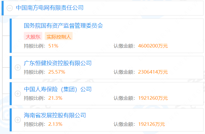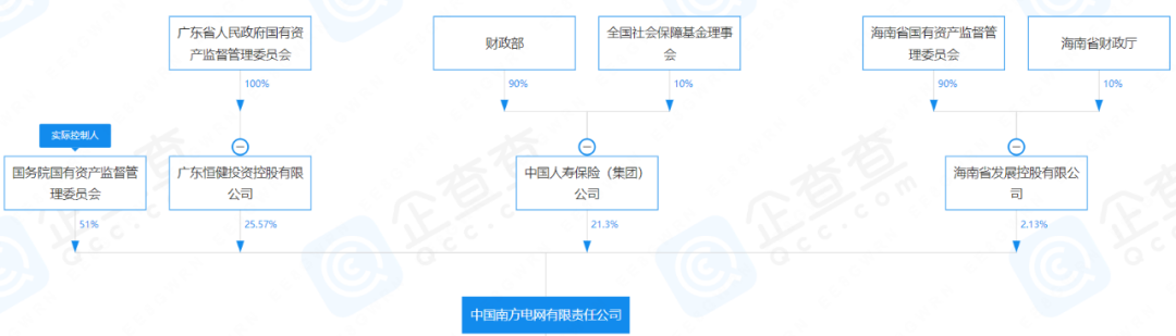 據媒體2021年12月報道,完善南方電網股權結構推動高質量發展專題會議在深圳召開,南方電網股權結構調整為國務院國資委持股51%、廣東省人民政府持股25.57%、中國人壽保險(集團)公司持股21.3%、海南省人民政府持股2.13%。