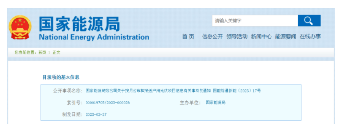 3月9日,國家能源局發布的《關于按月公布和報送戶用光伏項目信息有關事項的通知》。