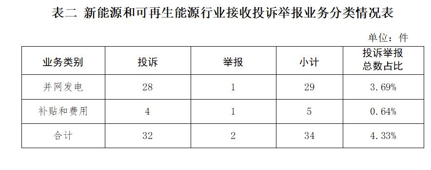 新能源和可再生能源行業排在第二位,數量為34件、占投訴舉報總數的4.33%,主要集中在并網發電、補貼和費用等方面。
