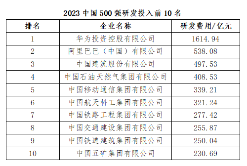 研發投入與研發強度持續提升。2023中國企業500強共投入研發費用15786.88億元,比上年增加了1312.21億元,增幅為9.07%。平均研發強度呈持續提升態勢,創下1.85%的新高,與上年500強相比提高了0.04個百分點。