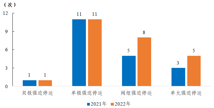 圖14 2021-2022年直流輸電系統強迫停運次數