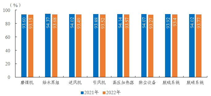 圖3 2021-2022年燃煤機組八類輔助設備可用系數