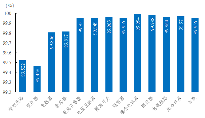 2022年,架空線路的強迫停運率為0.035次/百千米年,同比減少0.011次/百千米年。變壓器的強迫停運率為0.210次/百臺年,同比增加0.013次/百臺年。斷路器的強迫停運率為0.086次/百臺年,同比減少0.088次/百臺年。