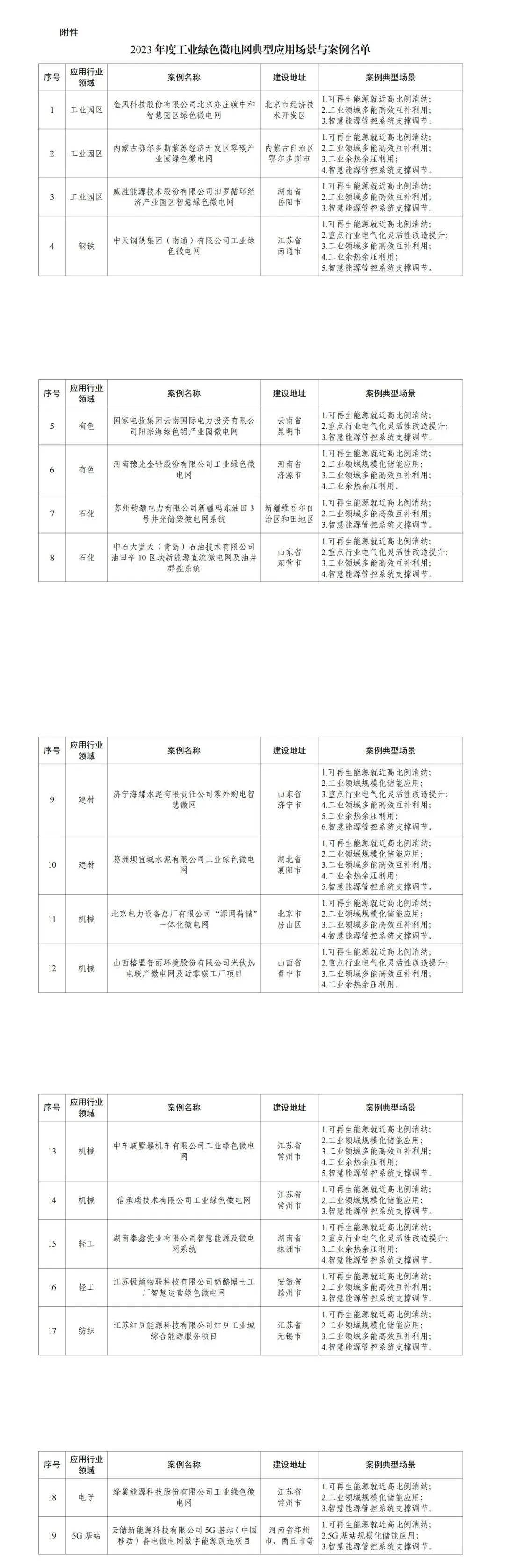 附件:2023年度工業綠色微電網典型應用場景與案例名單