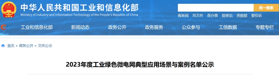 12月14日,工信部公示2023年度工業綠色微電網典型應用場景與案例名單。
