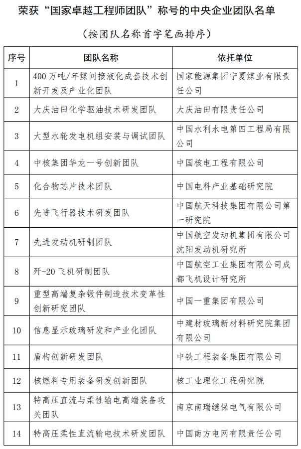 為表彰工程技術領域先進典型,黨中央、國務院決定開展“國家工程師獎”首次評選表彰,授予81名個人“國家卓越工程師”稱號、50個團隊“國家卓越工程師團隊”稱號。