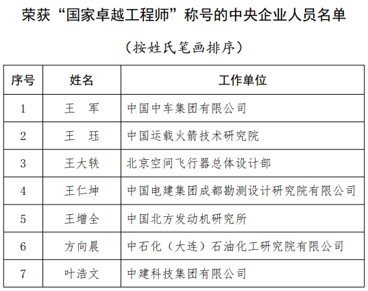 中央企業共有王軍等29名工程科技人才榮獲“國家卓越工程師”稱號,400萬噸/年煤間接液化成套技術創新開發及產業化團隊等20個團隊榮獲“國家卓越工程師團隊”稱號。