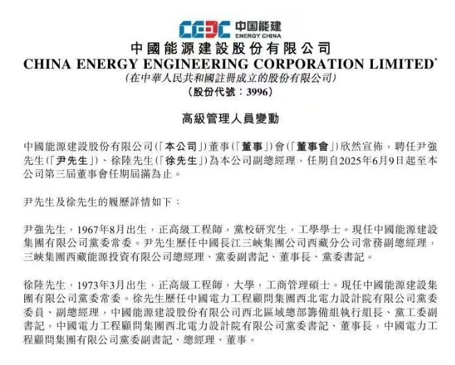 中國能建管理層調整