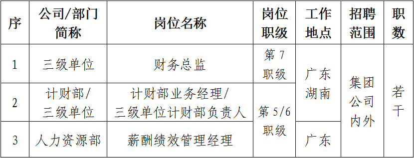 根據工作需要和公司招聘管理相關規定,現對廣東公司(海外公司)本部及下屬單位共3個崗位進行公開招聘。