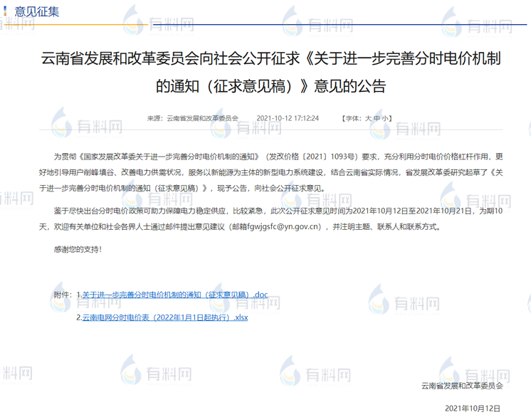云南發(fā)改委發(fā)布公告《關(guān)于進(jìn)一步完善分時(shí)電價(jià)機(jī)制的通知(征求意見稿)》。電度電價(jià)峰谷價(jià)差維持現(xiàn)行1.5:1:0.5,其中非市場化電量在目錄豐枯電價(jià)基礎(chǔ)上,峰時(shí)段電價(jià)在平時(shí)段基礎(chǔ)上上浮50%,谷時(shí)段在平時(shí)段電價(jià)下浮50%;市場交易電量以當(dāng)月電能量交易價(jià)格為基準(zhǔn),峰時(shí)段電價(jià)上浮50%,谷時(shí)段電價(jià)下浮50%。