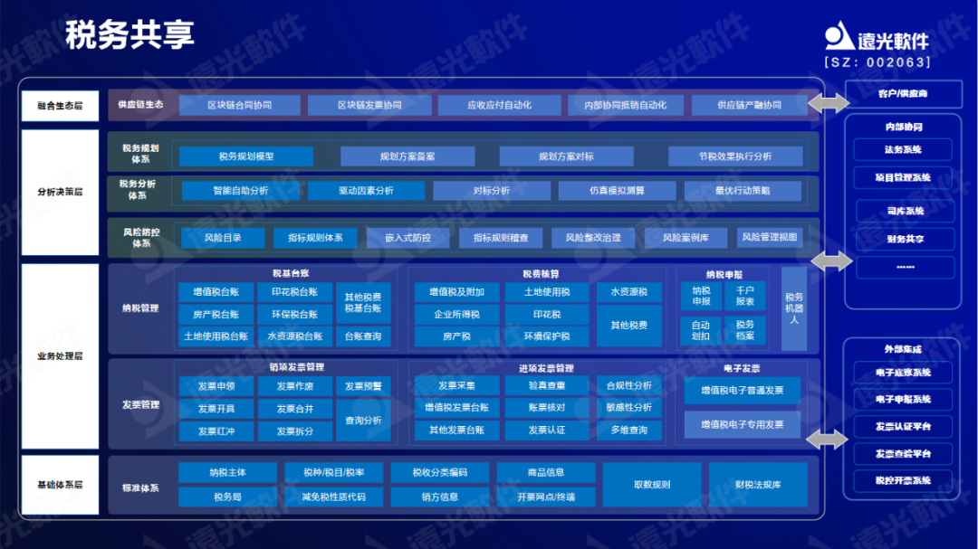 應用先進數字技術建立稅務標準體系,構建全稅種、全業務屬性發票池,并通過搭建稅企直連通道服務建立全稅種智能辦稅平臺,實現全稅種的計稅、報稅、繳稅、歸檔全流程智能化處理。同時,通過引入稅務局的監管和審計規則來構建稅務稽查模型,實現360度的稅務風險掃描,全面助力集團企業推進稅務管理的標準化、數字化、共享化、智慧化轉型。