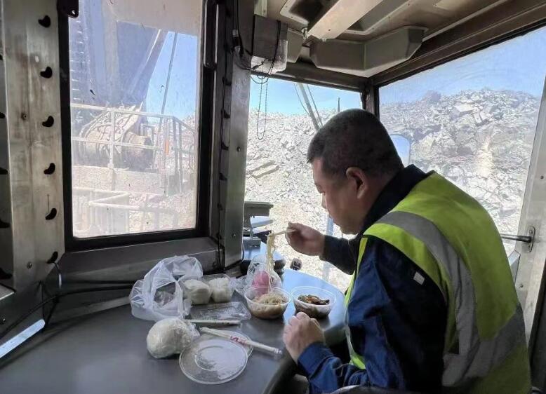 山西省朔州市中煤平朔集團東露天礦,電鏟挖掘機駕駛室內,司機邢利平在作業(yè)間隙吃午飯。