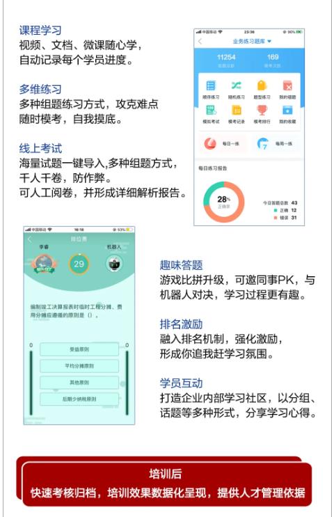 遠光“微學習”運用移動互聯網、大數據、云計算技術,根據企業培養計劃,融入培訓管理、學習地圖、課程管理、考試管理、講師管理、學習交流圈等多種場景,對企業人才培養進行全流程組織、監控,助力企業快速建立新型的高粘性企業大學,實現高素質人才的快速儲備。助您企業培訓管理,少走彎路!