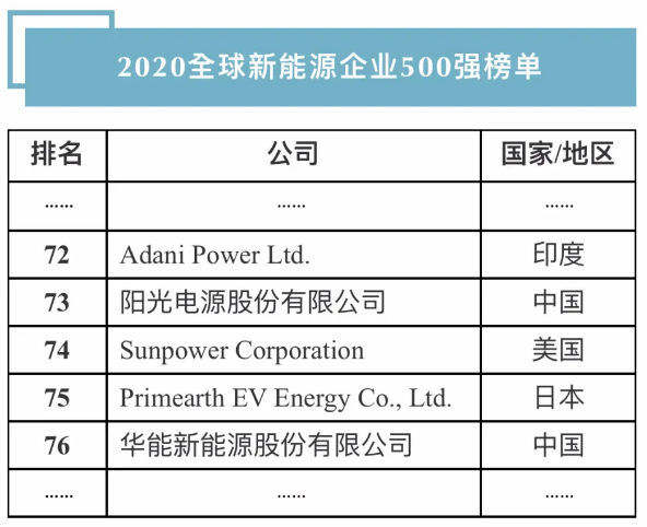 連續十年!陽光電源登榜“全球新能源企業500強”