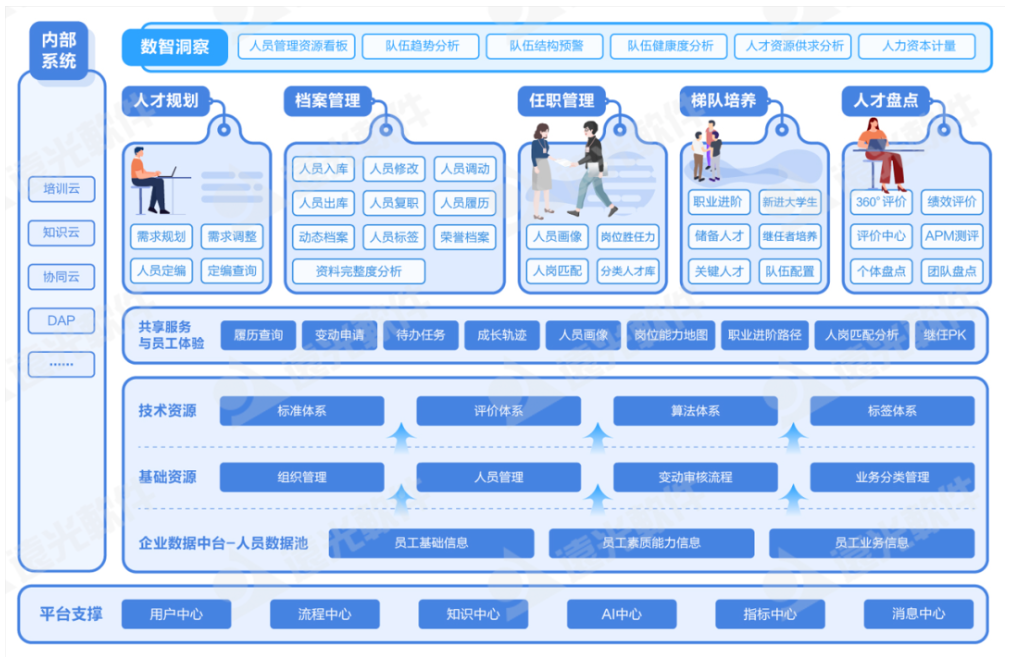 遠光人才云:盤活人才,健全管理全流程機制系統聚焦財務人才隊伍選、育、用、管、儲等多元化場景,打造集人員信息展示、人才分層分類管理、綜合能力評估、人才進階評價、人才精準培育、隊伍結構分析功能于一體的財會隊伍專業數智化平臺,助力企業完善財會人員閉環管理和全方位評價機制,構建規范高效的財務人才隊伍體系。