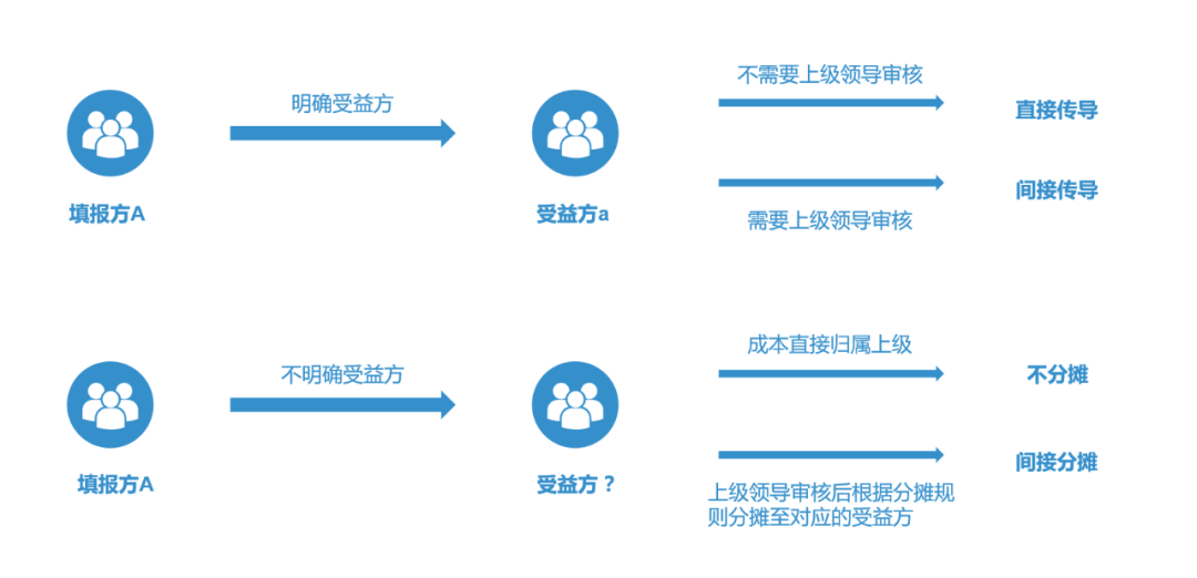 2、支持四種業(yè)務傳導方式按照業(yè)務活動審核流程和內部成本還原方式的不同,提供四種成本傳導方式。